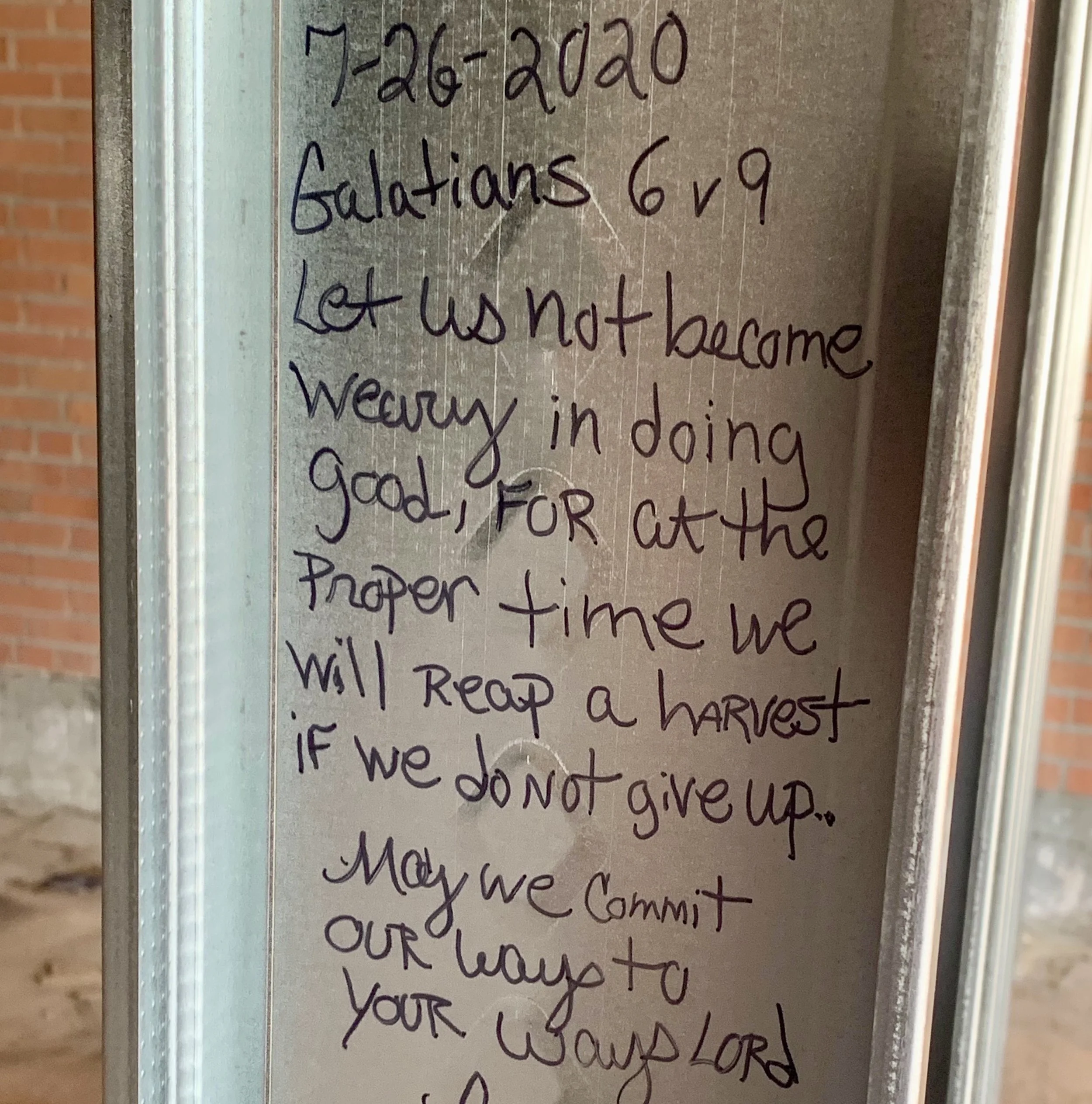 Dustin asked Hilary to write a song around the line “Resurrected eyes won’t cry”. He states in the podcast that these words came to him at a time when he was going through trials in his life.